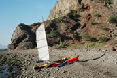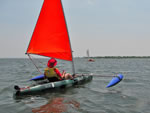 BSD rig on an inflatable kayak - It is a Gumotex (Innova) Helios 380 and may well be the best boat I've had for Balogh sailing. It is just hard to keep the water out in a big sea. I did the EC2007 in an Incept kayak from New Zealand, but the hull material is too flimsy for the florida oysters.